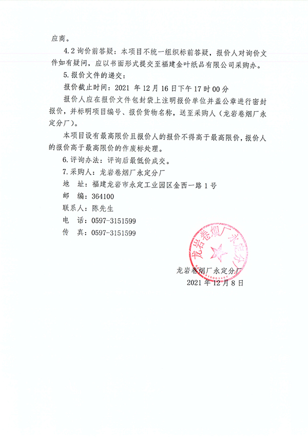 龍巖卷煙廠永定分廠簡易鋼架結構倉庫搭建項目詢價公告